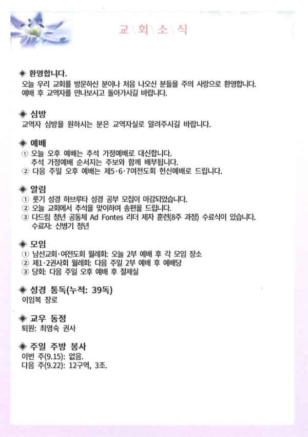 24년 9월 15일 주보