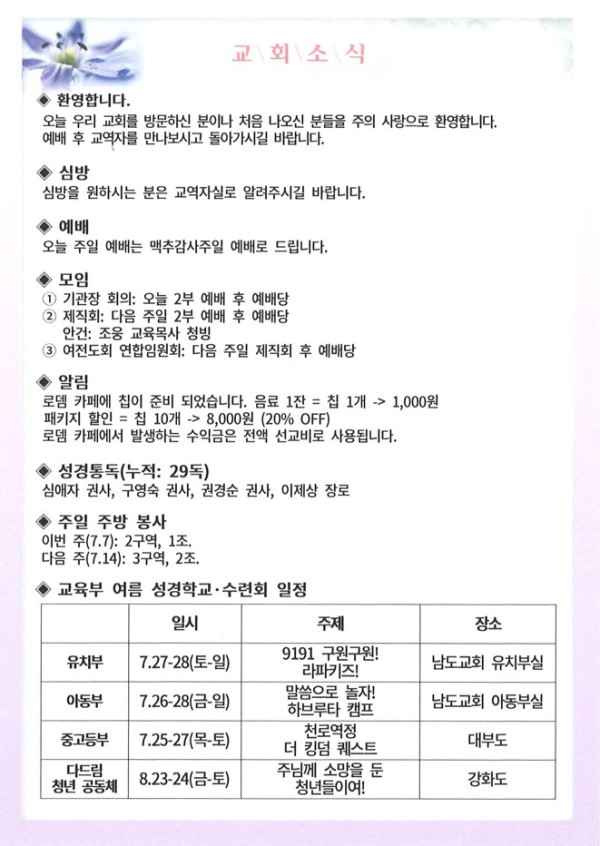 24년 7월 7일 주보