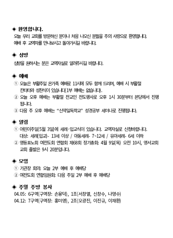 2026년 4월 5일 교회소식